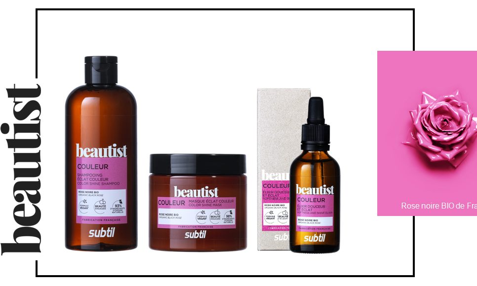 Un Shampooing, un Masque et un Élixir à la rose noire Bio de France. Son extrait est reconnu pour ses vertus antioxydantes et hydratantes.